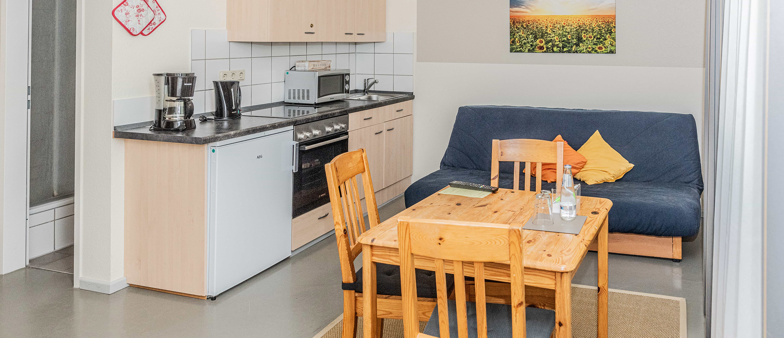 Genießen Sie den Komfort eines Gästehauses, vereint mit den Vorzügen einer eigenen Wohnung. Kochen, Arbeiten und wohnen Sie auch weit weg von zu Hause wie zu Hause.