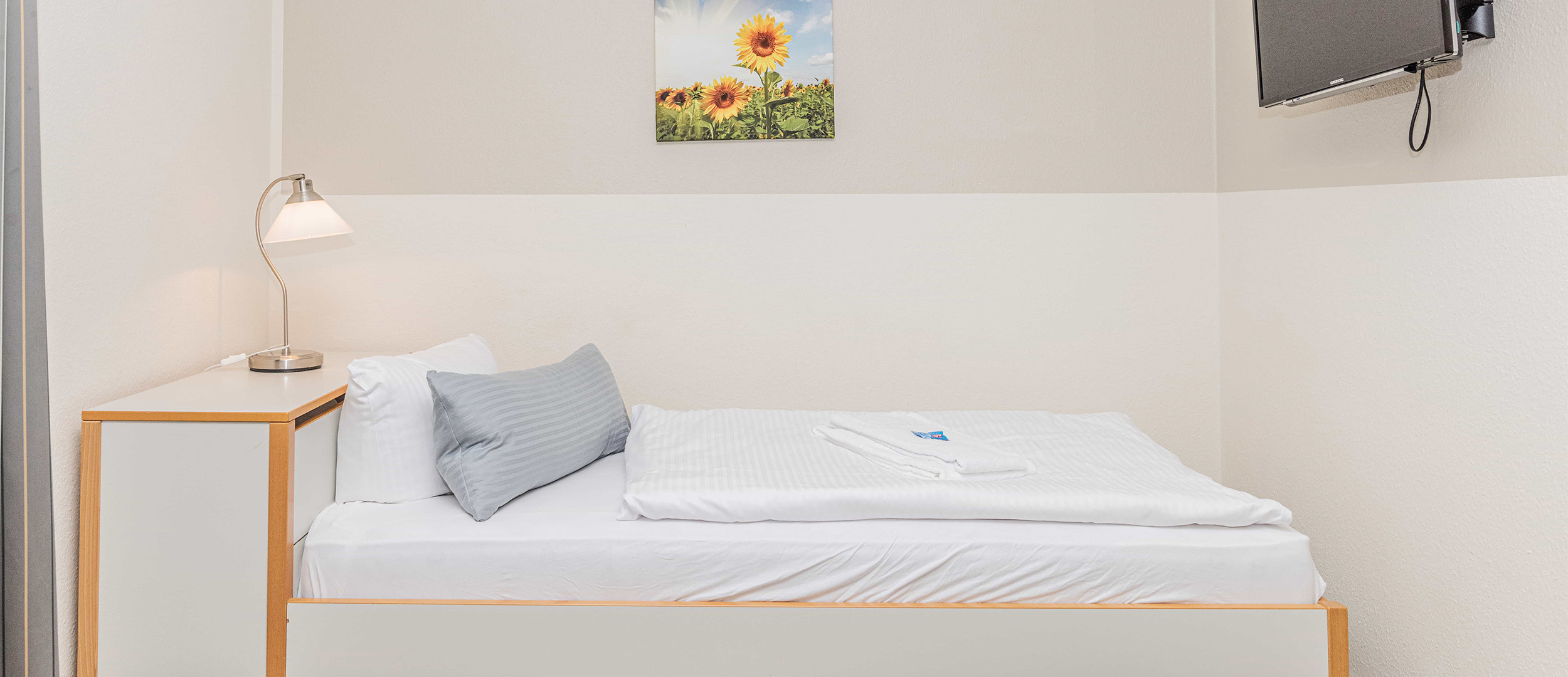 Im geräumigen, auf eine Person zugeschnittenen Wohn- und Schlafbereich befindet sich eine gut ausgestattete Küche mit Esstisch, ein zum Zusatzbett wandelbares Sofa, ein 90 cm breites Bett, ein Flachbild-TV und ein geräumiger Schrank für Ihre Urlaubsgarderobe. Zusätzlich kann ein Kinderbett als Zusatzleistung gebucht werden.